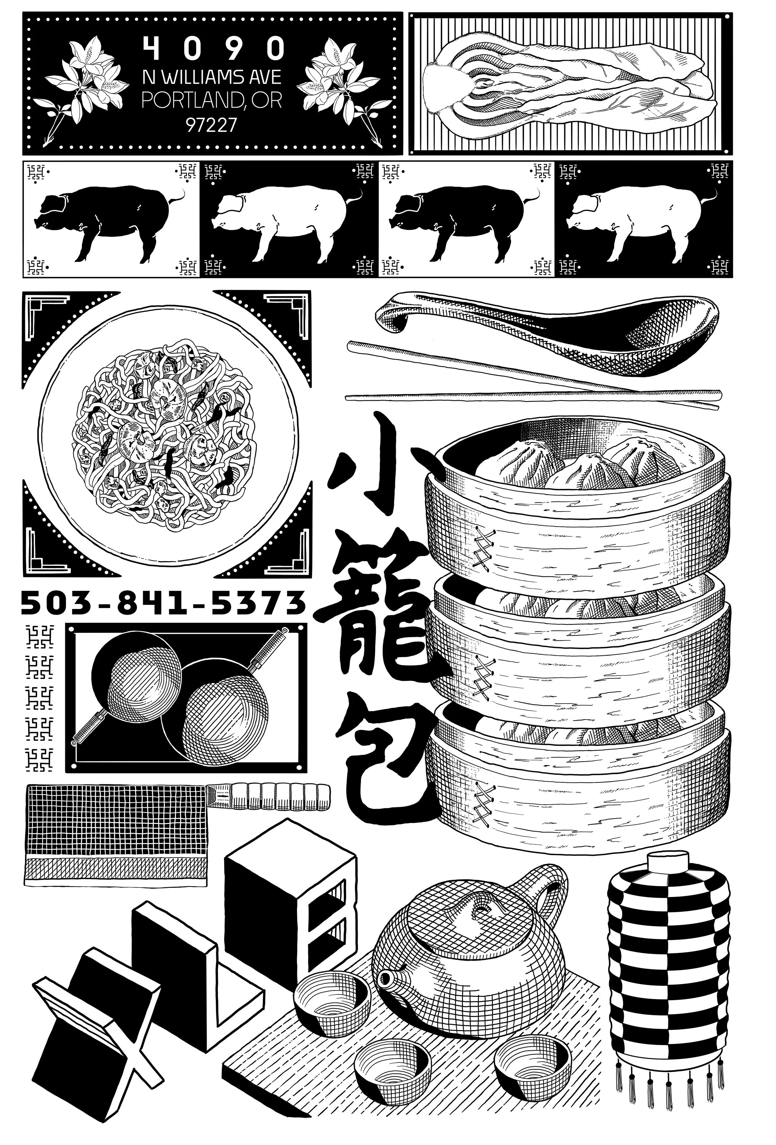 This graphic for the restaurant XLB was a challenge I gave myself in terms of composition and purpose. I wanted to combine my illustration skills with something more tangible for a business. The process of having full creative control really allowed me to run with my initial idea of a Chinese restaurant poster.